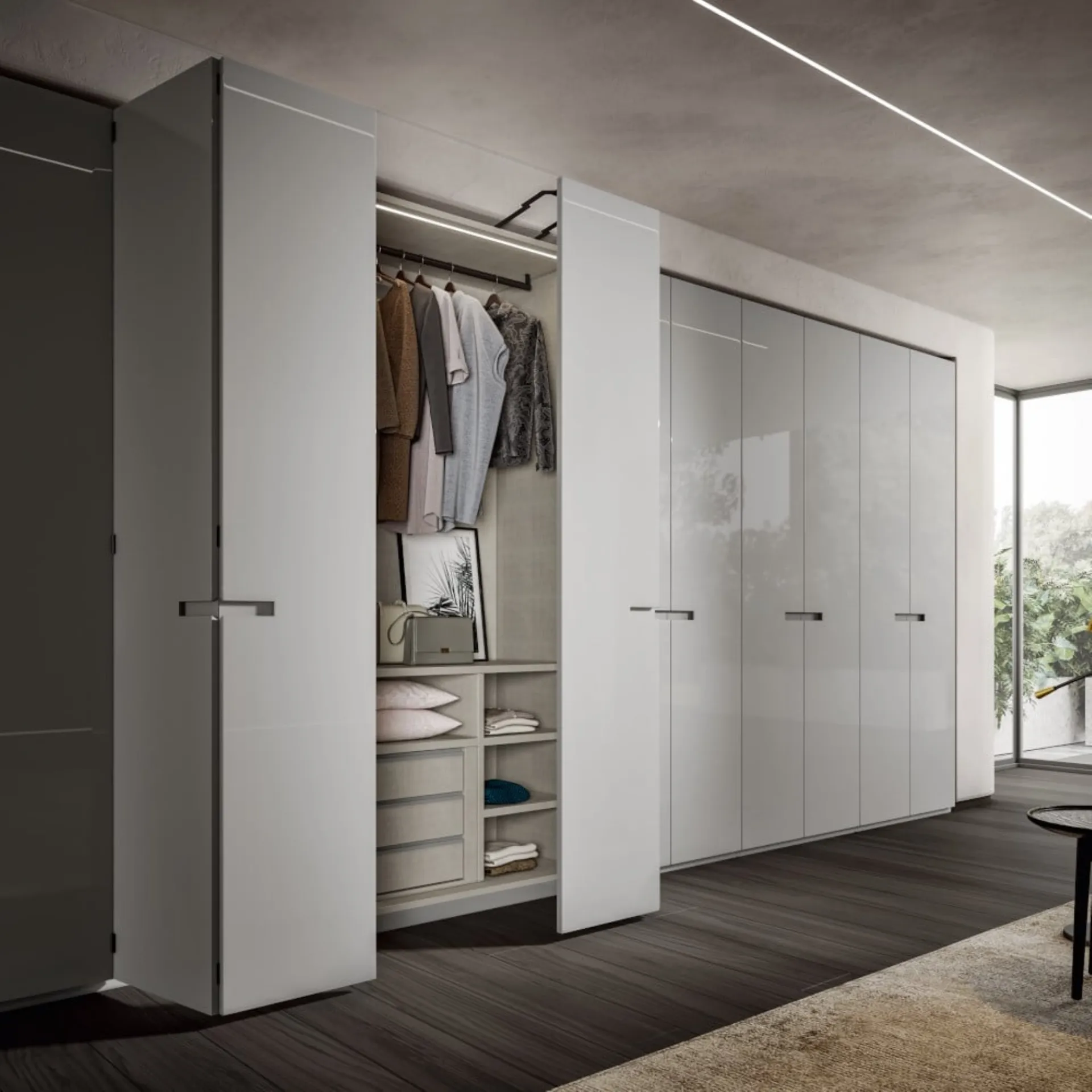 Questa proposta, tra i differenti modelli a muro con ante a soffietto di Veneran, è simbolo di resistenza, eleganza e raffinatezza duraturi negli anni. Armadio con ante a pacchetto Linea New in laccato Cenere di Veneran: compila il form per info e preventivi e progetta la tua casa come l'avevi sognata. Nella nostra collezione di Armadi a muro moderni con ante a soffietto potrai trovare anche il modello mostrato in foto, pensato per chi cerca praticità e design. Contattaci e scopri di più su una ricca gamma di Arredamento Casa per progettare la zona del riposo grazie a mobili contenitori in laccato lucido di alto contenuto estetico. Per completare il concept d'arredo in una camera da letto bella e funzionale, abbiamo selezionato per te le più originali e accattivanti soluzioni Veneran, diverse per stile, dimensione, finitura e accessori.