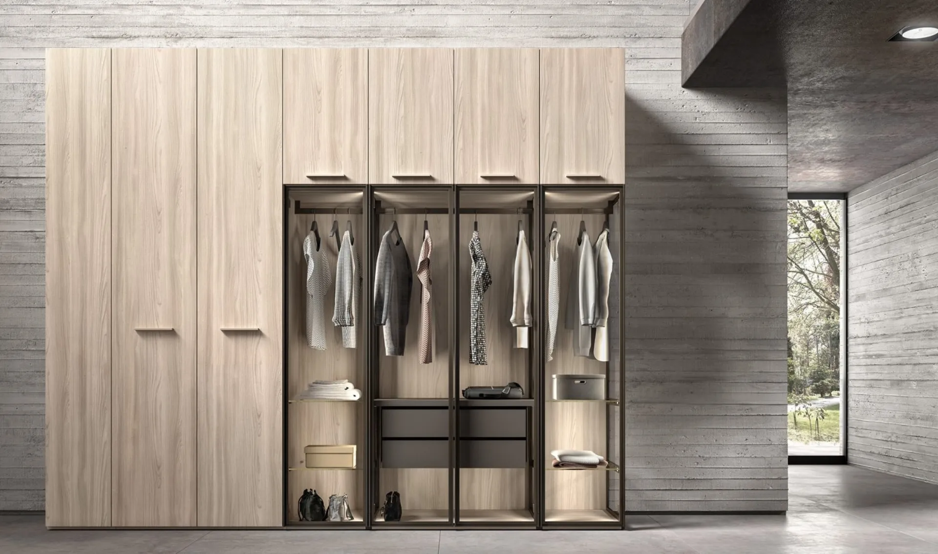 Sicurezza e comfort sono gli ingredienti che, di pari passo con un certo stile, connotano tutti gli Armadi a muro design dell'azienda Abitare Mobilstella. Farci visita significa vedere dal vivo tanti prodotti del noto e conosciuto marchio, sempre di elevata qualità. Armadio con ante battenti Opera finitura Legno e Vetro di Abitare Mobilstella in melaminico: in un ricco catalogo di mobili e oggetti accessori, questo modello ti permetterà di ultimare la tua zona notte come l'hai sempre immaginata. Se vuoi ricreare una stanza bella e funzionale, compila il form o visitaci per ottenere infromazioni, consigli e novità nell'ambito dell'Arredamento Casa. Armadio con ante battenti Opera finitura Legno e Vetro di Abitare Mobilstella: se cerchi arredatori professionisti per preventivi e progetti, realizza con noi la casa che hai sempre sognato. Una ricca varietà di arredi in melaminico come questo guardaroba con ante battenti nell'immagine.