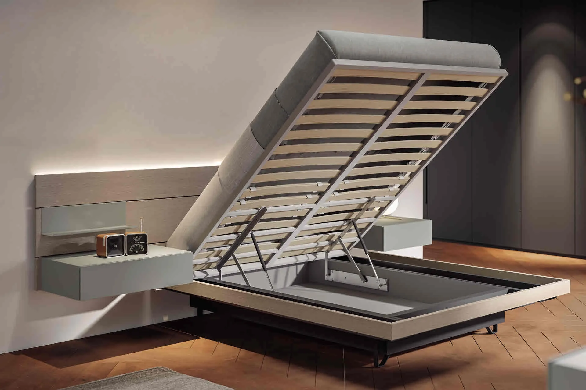 Il Letto 911 con box contenitore di Veneran è uno tra i prodotti più originali del brand, garanzia di durata nel tempo, qualità dei materiali e uno stile unico. Per ultimare alla perfezione l'arredo della tua zona del riposo è di primaria importanza valutare gli abbinamenti del letto con armadi e comodini, elementi accessori e quant'altro: se vuoi mobili moderni, il modello nella fotografia fa al caso tuo. Contattaci e scopri di più sulla nostra collezione di Letti matrimoniali con contenitore: ottimizza la tua camera da letto con le nostre composizioni. Questa è una proposta di grande gusto, che racchiude in sé tutta la qualità garantita dalla pluriennale esperienza del marchio nel settore.