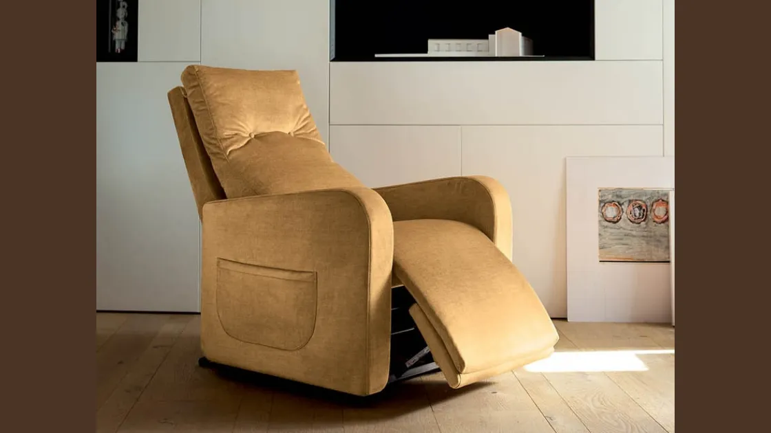 Poltrona Relax Flora di Rigosalotti: le nostre proposte moderne ti attendono. Una ricca gamma di Poltrone relax moderne per il living e le altre aree di casa ti attende nel nostro showroom: se desideri un modello in tessuto, scopri ora un ricco catalogo di soluzioni ideali per te. Completare lo stile della propria casa non è cosa di poco conto: arrivano in nostro soccorso le Poltrone relax. Nella fotografia puoi vedere uno tra i modelli del marchio Rigosalotti, specialista nella realizzazione di divani e poltrone con movimenti relax o alzapersona.