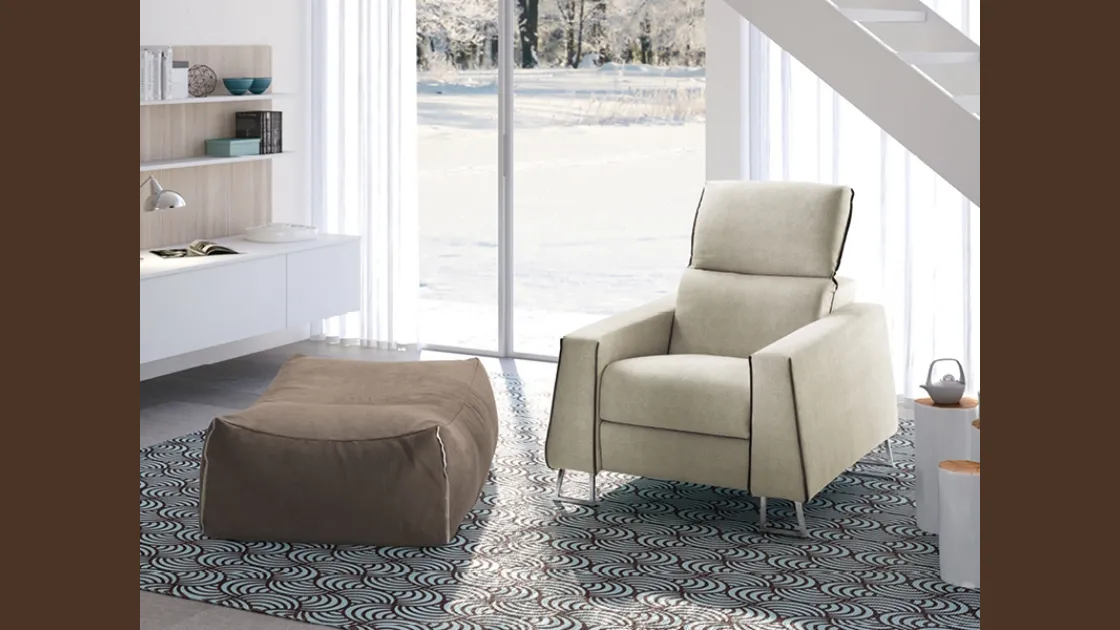 Una ricca gamma di Poltrone moderne ti sta aspettando nel nostro showroom. In foto puoi vedere uno dei modelli di Rigosalotti, specialista nella realizzazione di divani e poltrone per il soggiorno e le altre stanze di casa. Se vuoi un modello in tessuto, scopri ora una ricca gamma di soluzioni di grande design. Ultimare lo stile della propria casa non è cosa da poco: arrivano in nostro soccorso le Poltrone. Poltrona con meccanismo relax Davis di Rigosalotti: tutti i prodotti del marchio sono sinonimo di resistenza nel tempo, qualità di materiali e rivestimenti, forme decise e un design unico.